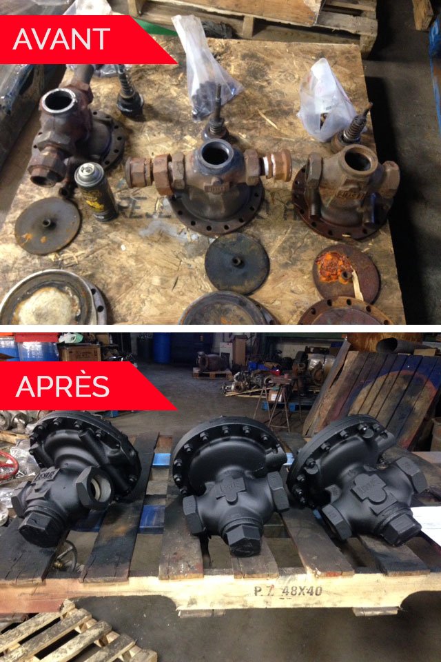 - Nous réparons tous types de vannes industrielles et des vannes de mélange pour chauffe-eau (LESLIE et GRAHAM), y compris les soupapes de sûreté conformément aux normes ASME et NB avec certification.
